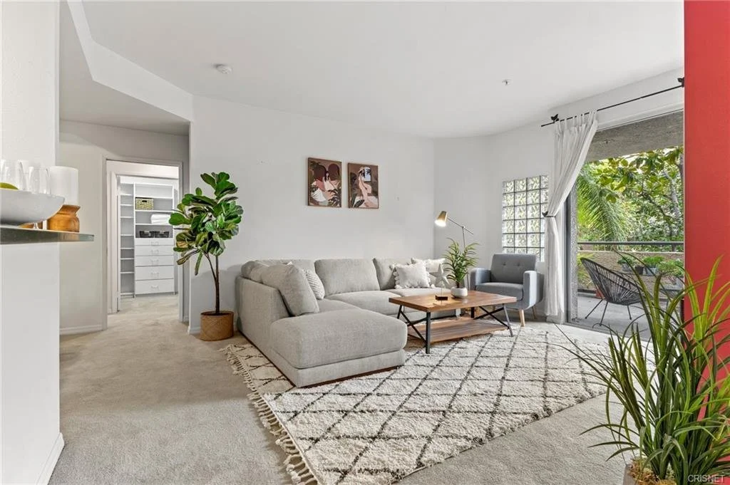 Treat yourself to laid-back L.A. living in this chic residence that offers a series of updated features for you to discover! A rare find you'll want to take advantage of; this front-facing unit comes with the LARGEST BALCONY IN THE COMPLEX. Soft carpeting flows through an open-concept layout where designer touches impressively define the gathering areas. Large windows usher abundant sunlight inside with a chic teal-toned accent wall in the dining area that tastefully matches the cabinetry in the kitchen equipped with a suite of appliances for the avid home cook. 2 well-sized bedrooms, including the primary bedroom that highlights a walk-in closet and an upgraded bath showcasing a glass-enclosed walk-in shower as well as a toilet with a bidet. Step out to your sunlit balcony where you can welcome the mornings with a cup of coffee in hand. As a bonus, this modern home conveniently opens up to the courtyard and features a newer HVAC system. Come experience all this for yourself before the opportunity's gone for good!